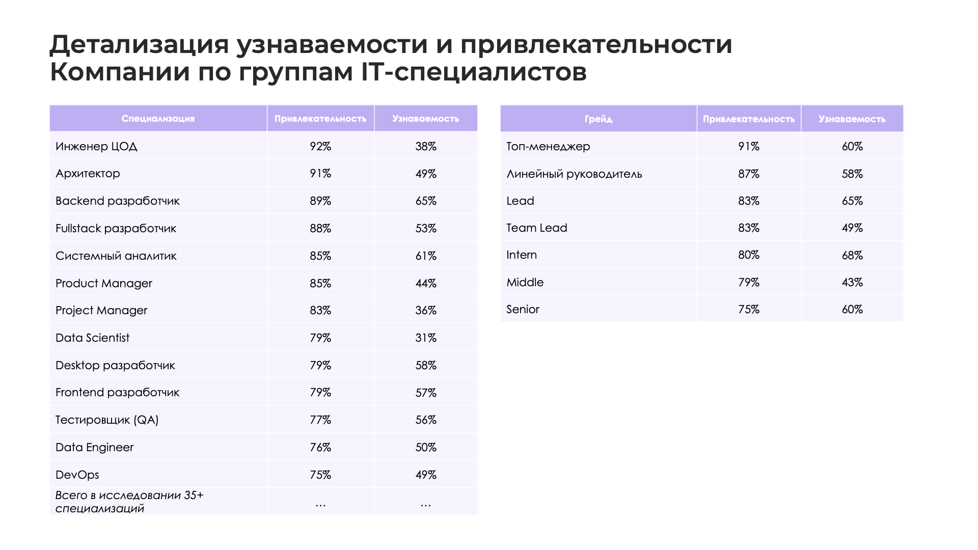 В нашем исследовании есть срезы про 33 профессии, 35 языков программирования и все грейды IT-специалистов